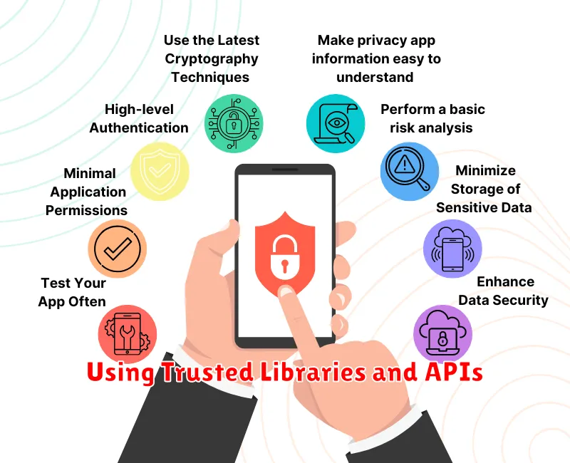 Leveraging well-established and reputable libraries and APIs is crucial for building secure mobile applications. Trusted libraries often undergo rigorous security testing and have established vulnerability disclosure processes, reducing the risk of introducing known weaknesses into your app.